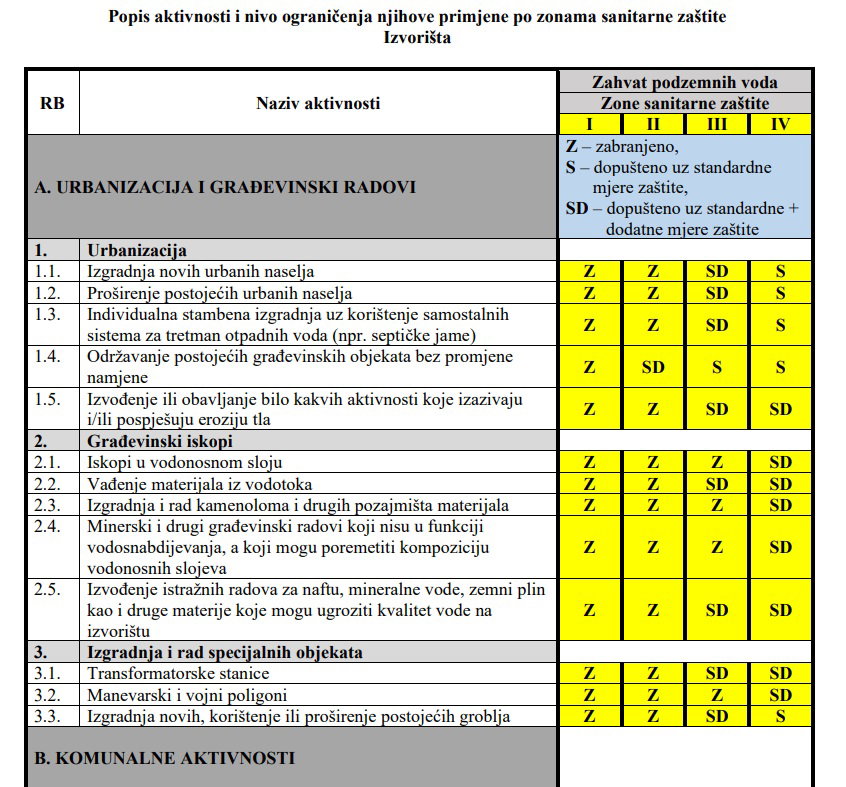 Nadalje, u vodozaštitnoj zoni III bit će dozvoljen niz industrijskih aktivnosti, odnosno eksploatacija. Zanimlljivo, već u vodozaštitnoj zoni II, prema istom prilogu, bit će dozvoljena izgradnja urbanih prometnica, parkirališta, mostova, tunela… Isto tako, u ovoj zoni bit će dozvoljena i izgradnja sportsko-rekreacionih i banjsko-lječilišnih objekata, kampovanje, izgradnja sportskih terena i sl.